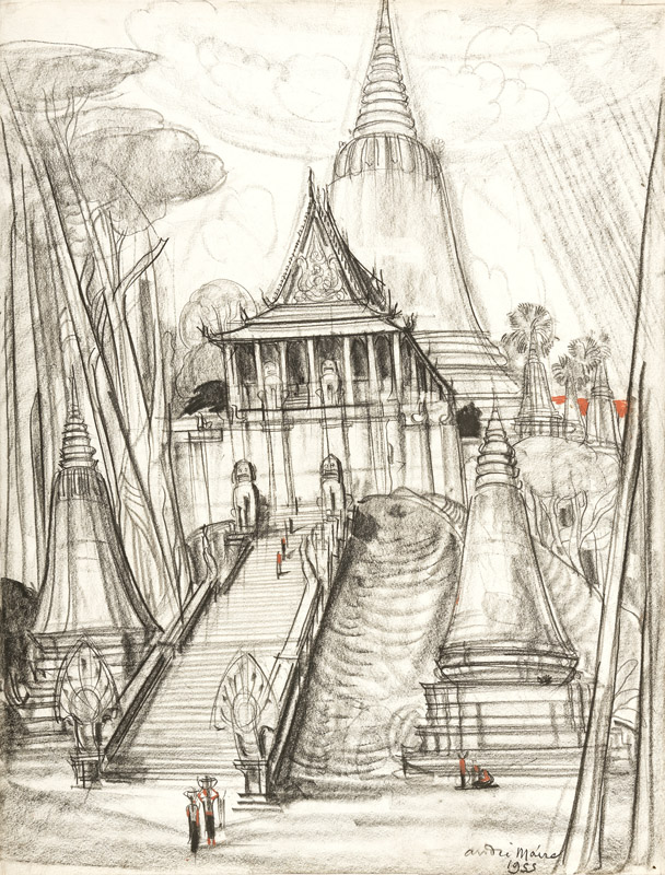 Craie conté sur papier, signée et datée 1955 en bas à droite