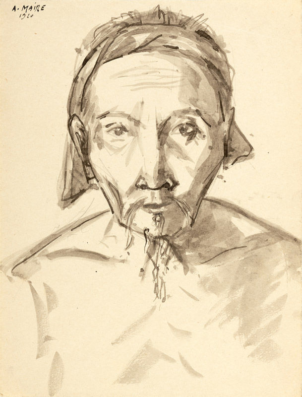 Lavis d'encre sur papier, signé et daté 1920 en haut à gauche