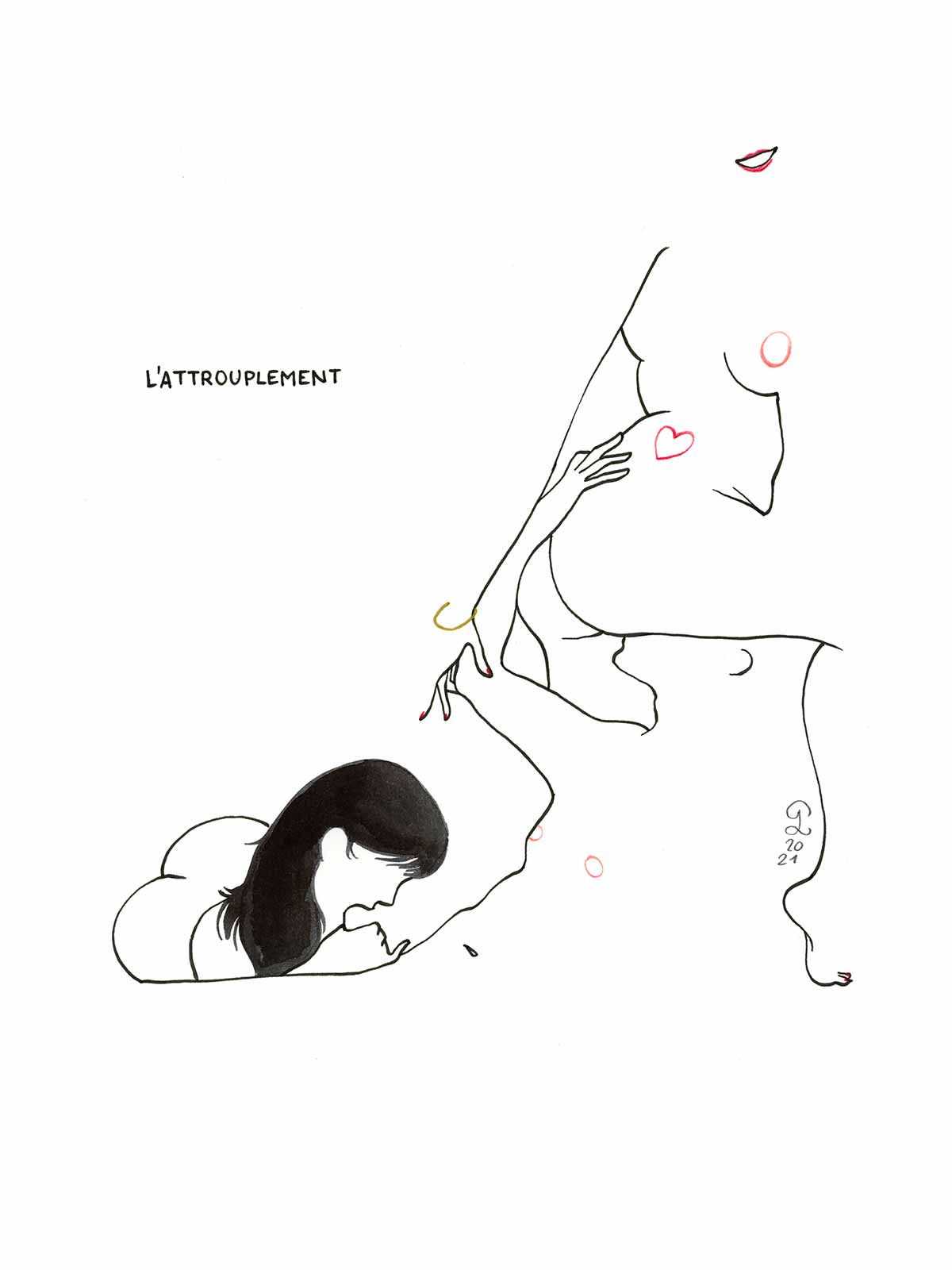 Encre et aquarelle sur papier, signée en bas à droite.