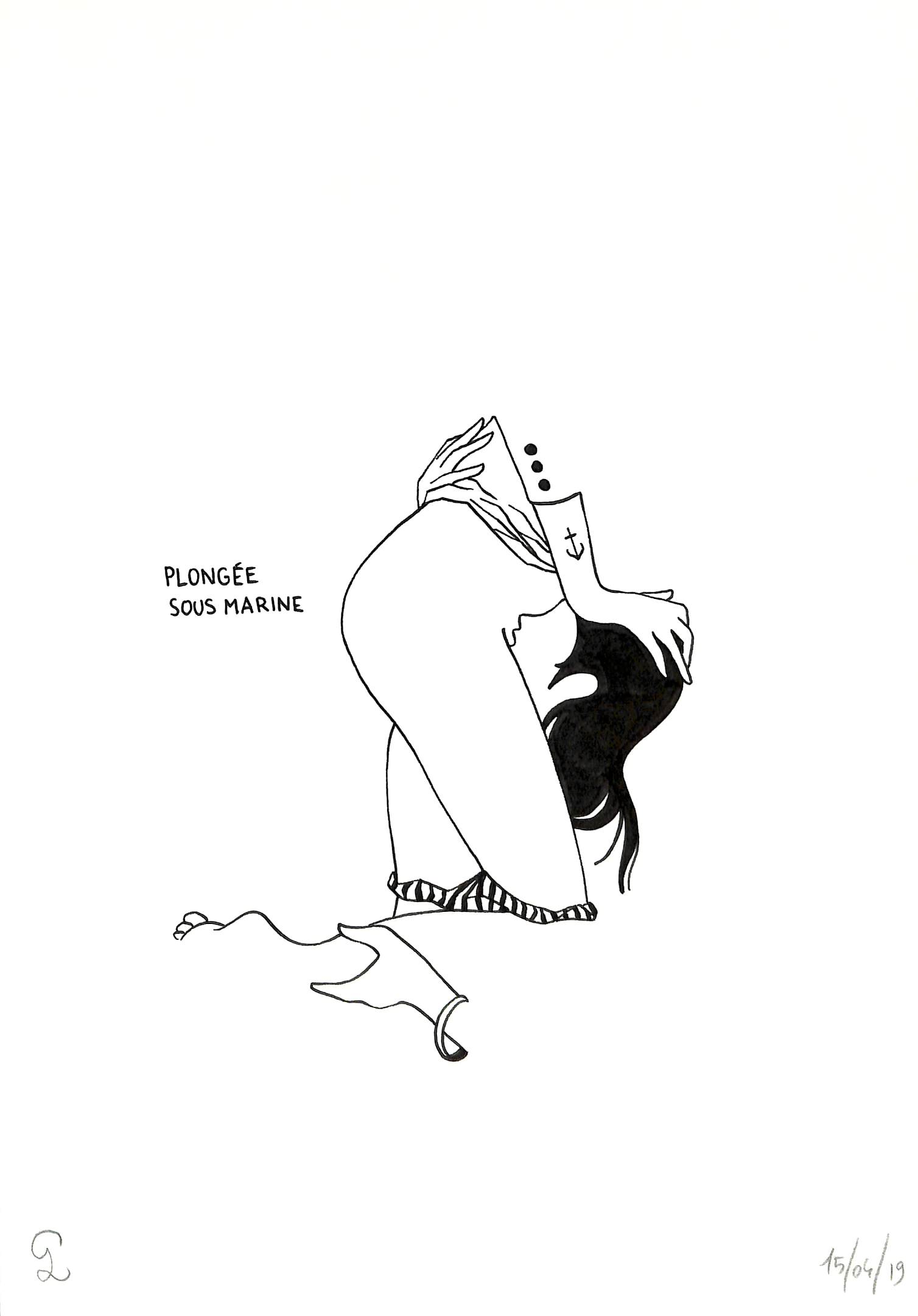 Encre sur papier, monogrammée en bas à gauche et datée 15/04/19 en bas à droite