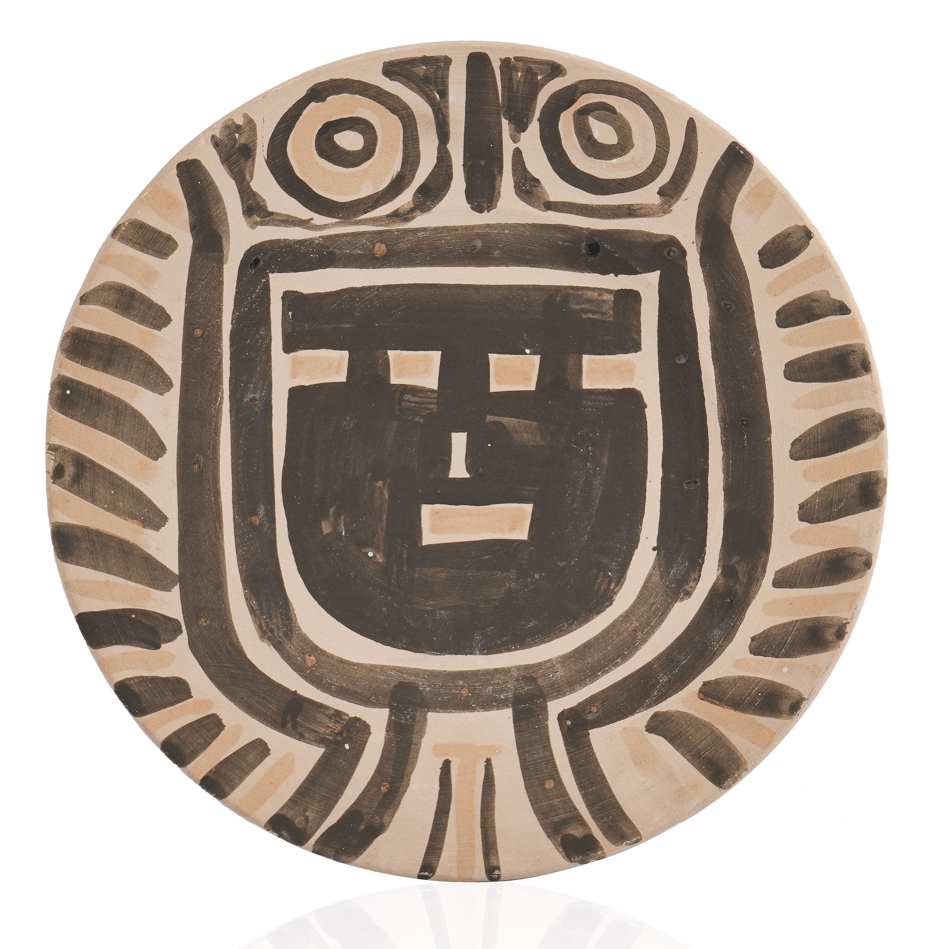 Terre cuite peinte, située Vallauris, signée, datée 26.6.1953 et cachet Madoura au verso.